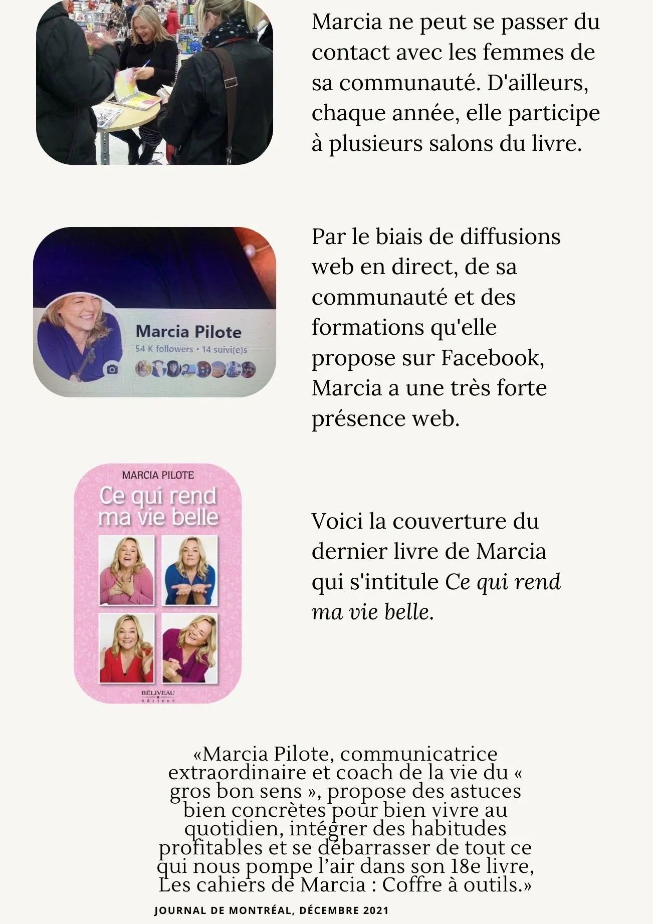 Marcia a une façon bien à elle de livrer son contenu. Elle aime raconter, faire des sketchs humoristiques, livrer des SLAMS et parler de la vie comme personne n’en parle avec un angle qui favorise les prises de conscience.